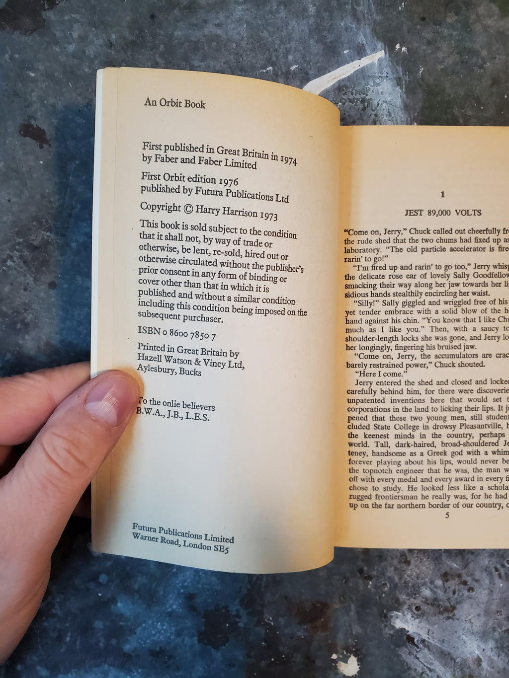Mid 70s novel by Harry Harrison, in good condition with minor wear and tanning.