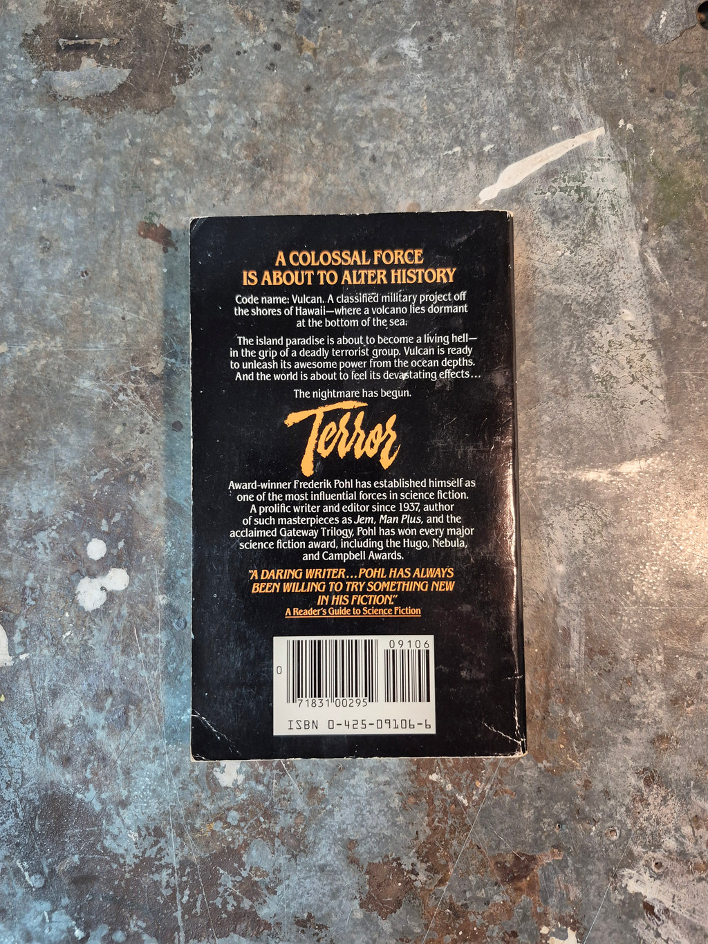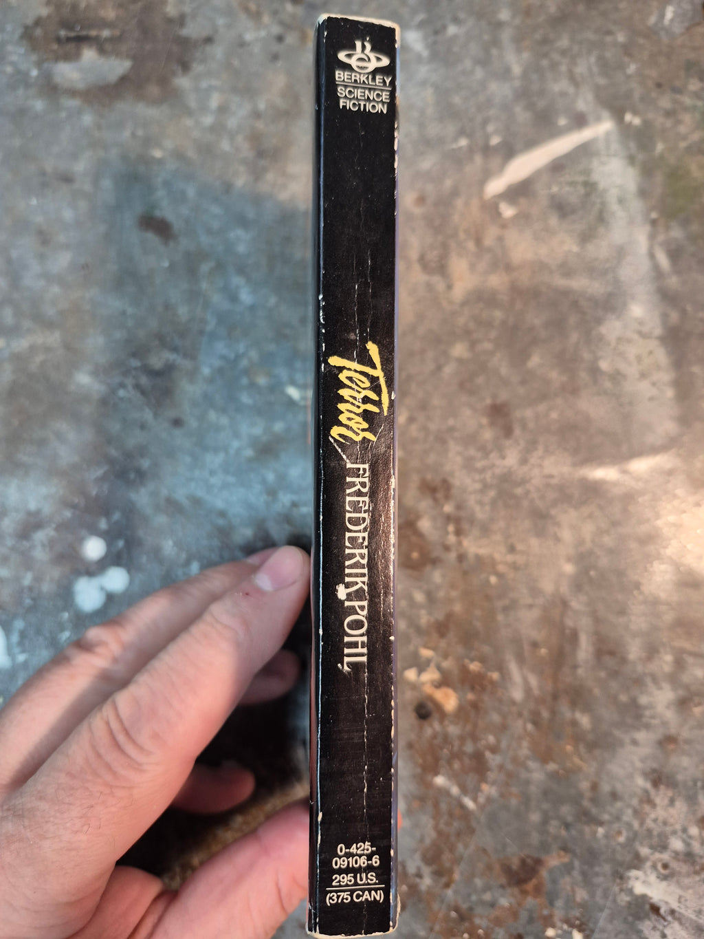 Mid 80s novel by Frederik Pohl, in decent condition with minor wear and tanning.
