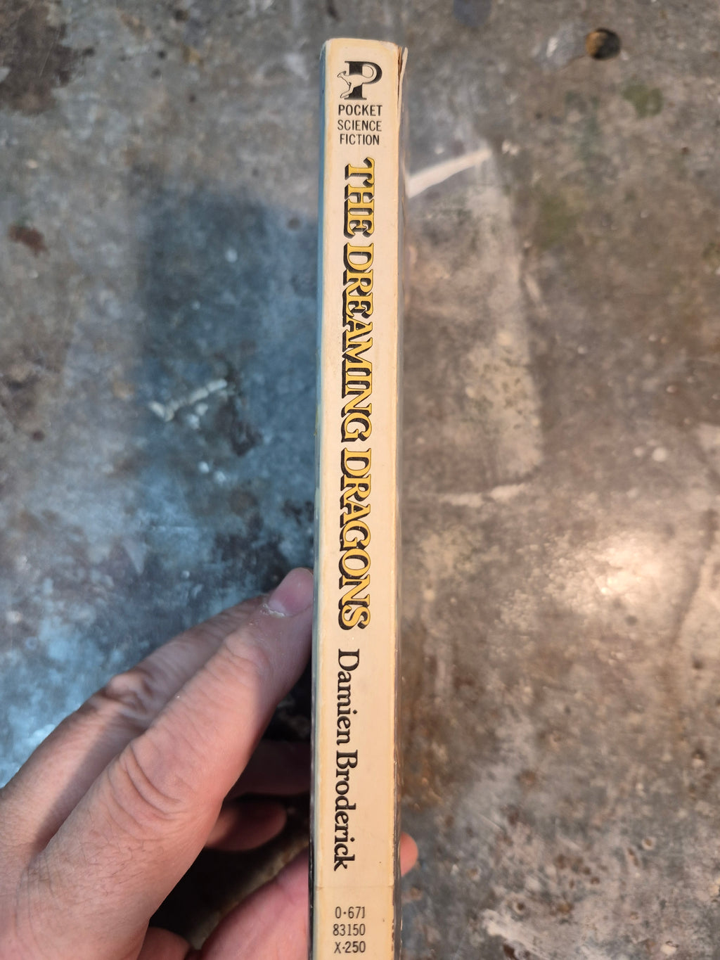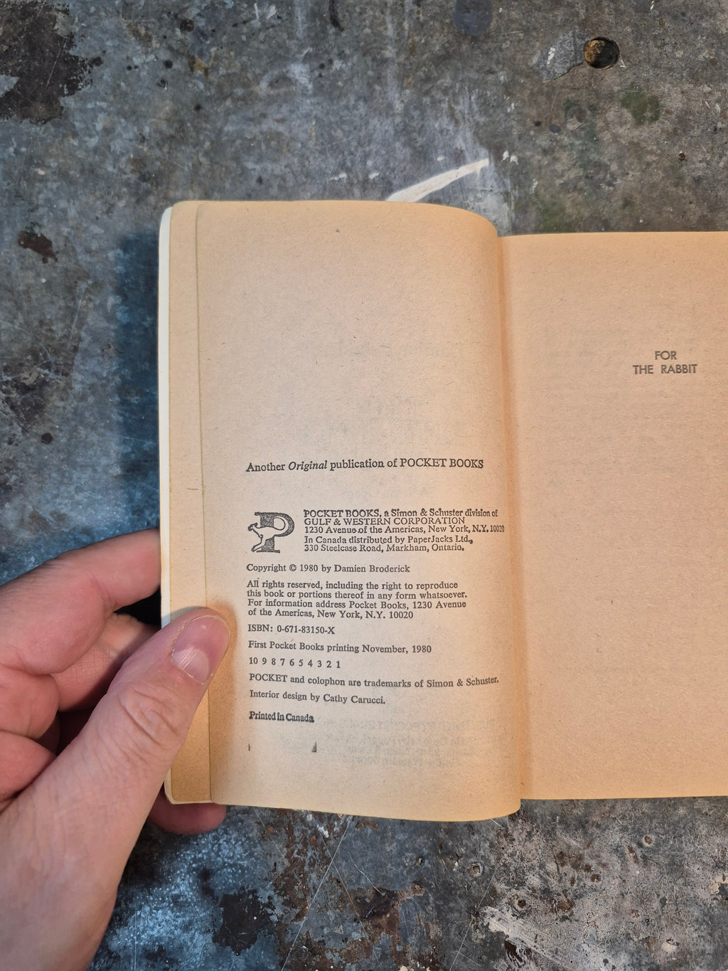 Early 80s novel by Damien Broderick, in decent condition with minor wear and tanning.