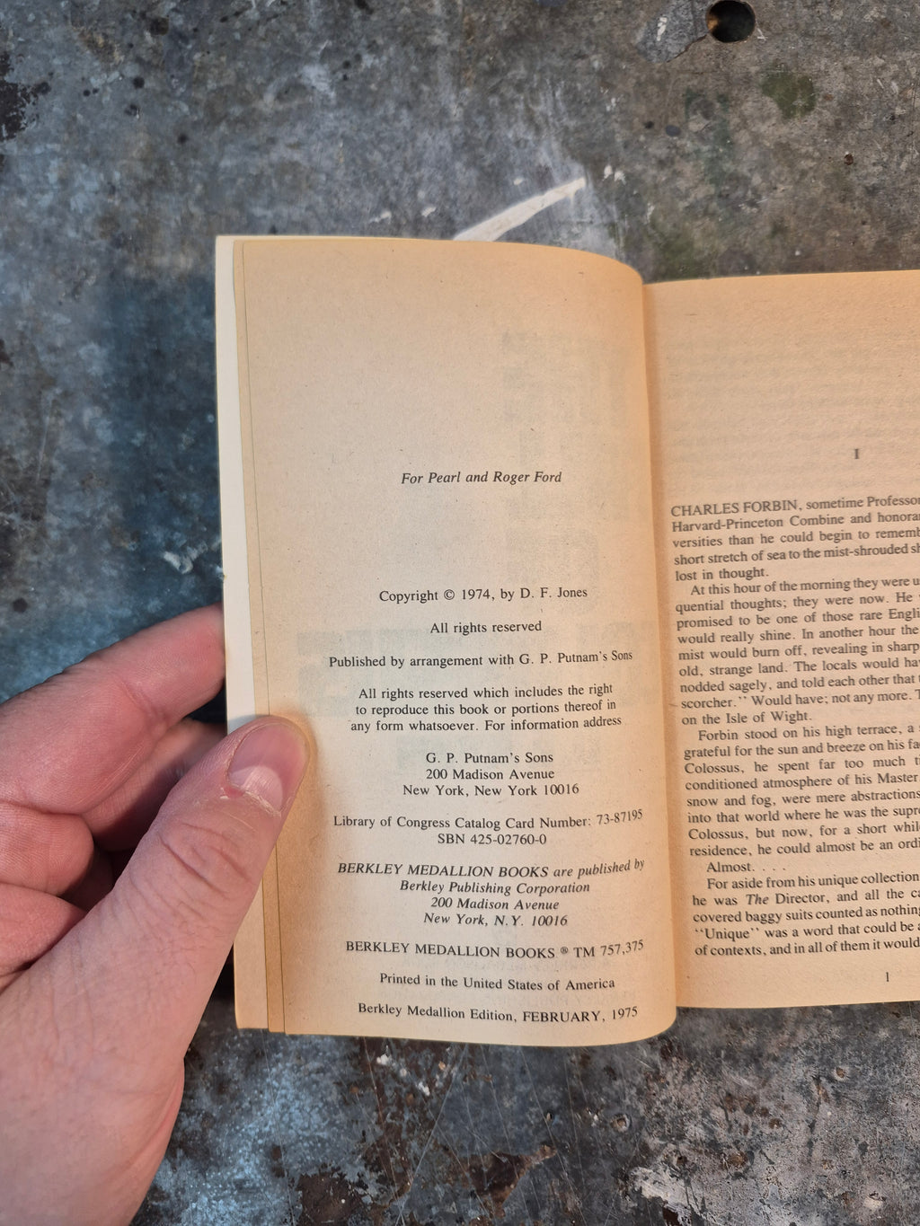 Mid 70s edition of the novel by D. F. Jones, in good condition with minor wear and tanning.