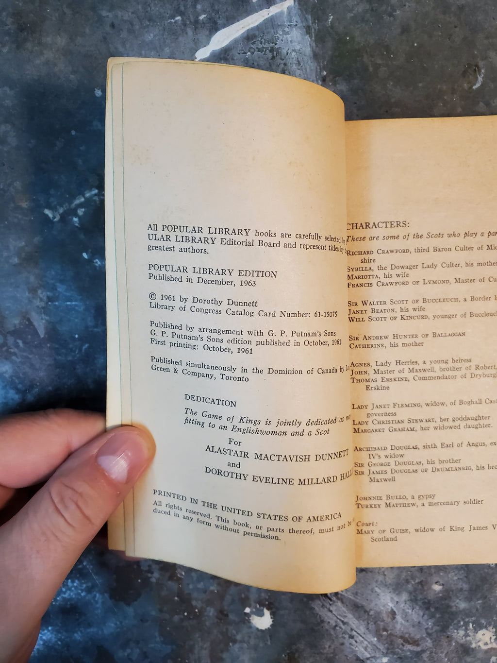 Mid 60s novel by Dorothy Dunnett, in good condition with mild wear and tanning.