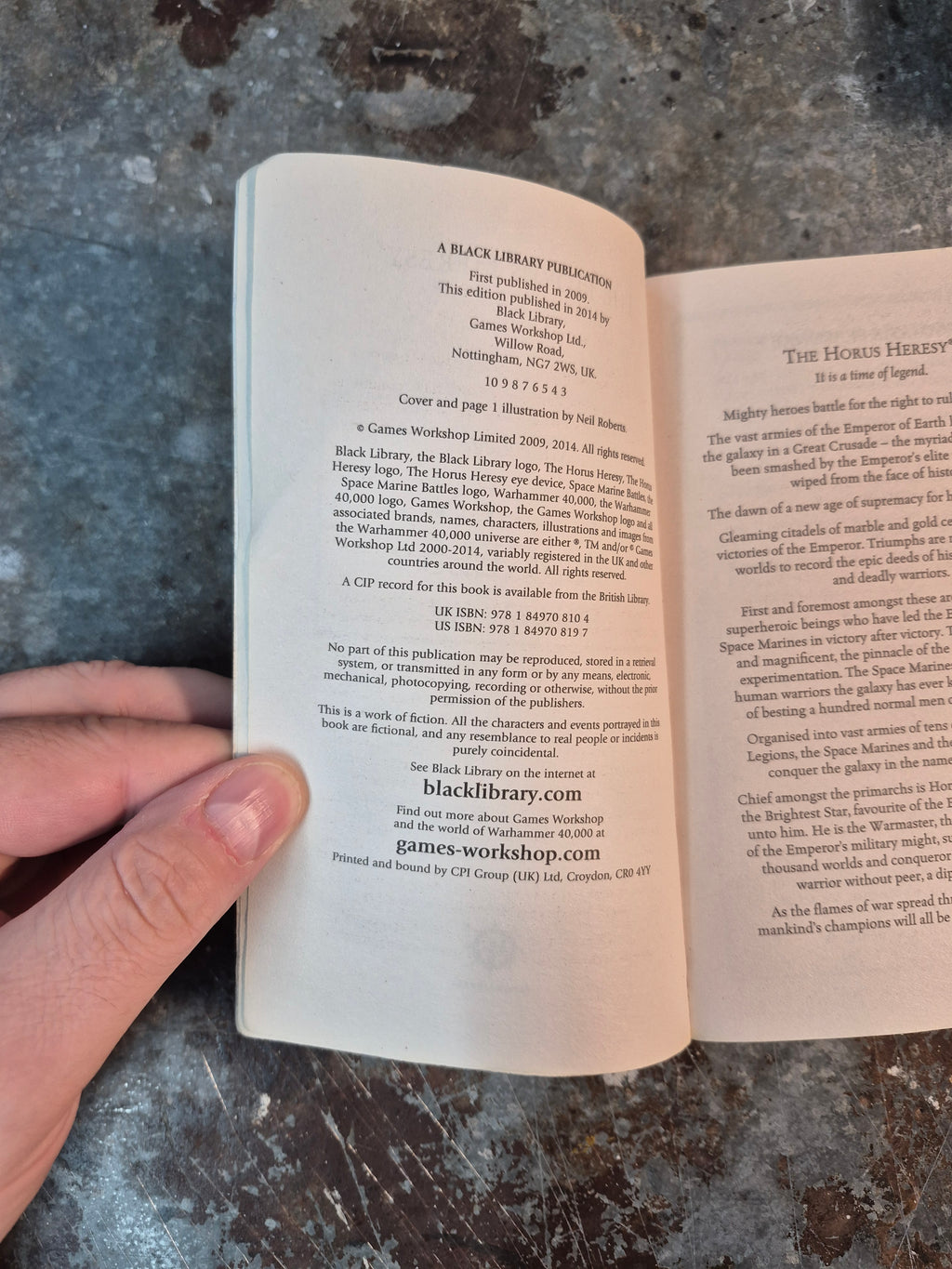 Scarce and sought-after Horus Heresy/Warhammer 40k novel by Mike Lee, in good condition with minor wear and tanning. Two corner creases on the cover and some scuffing on the spine edges.