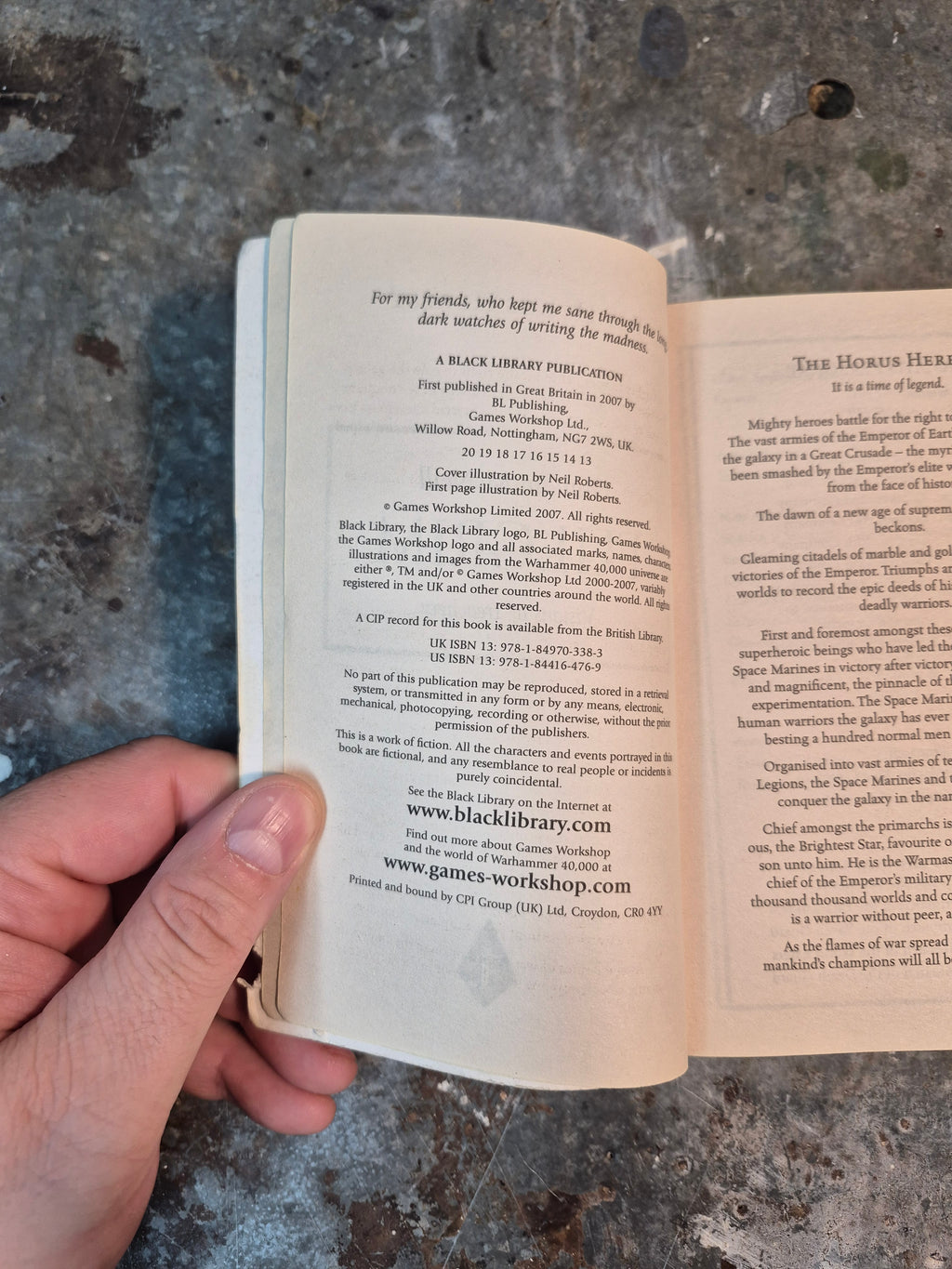 Scarce and sought-after Horus Heresy/Warhammer 40k novel by Graham McNeill, in good condition with minor wear and tanning. Small chip out of the bottom corner of the cover (pictured).
