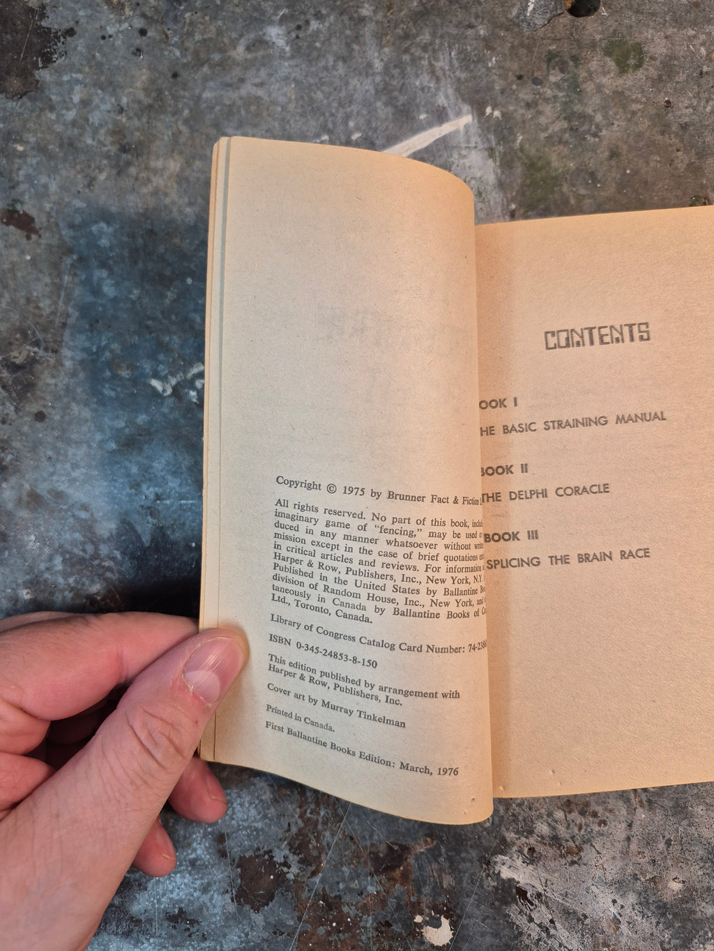 Late 70s edition of the novel by John Brunner, in good condition with minor wear and tanning. Awesome Murray Tinkelman artwork.