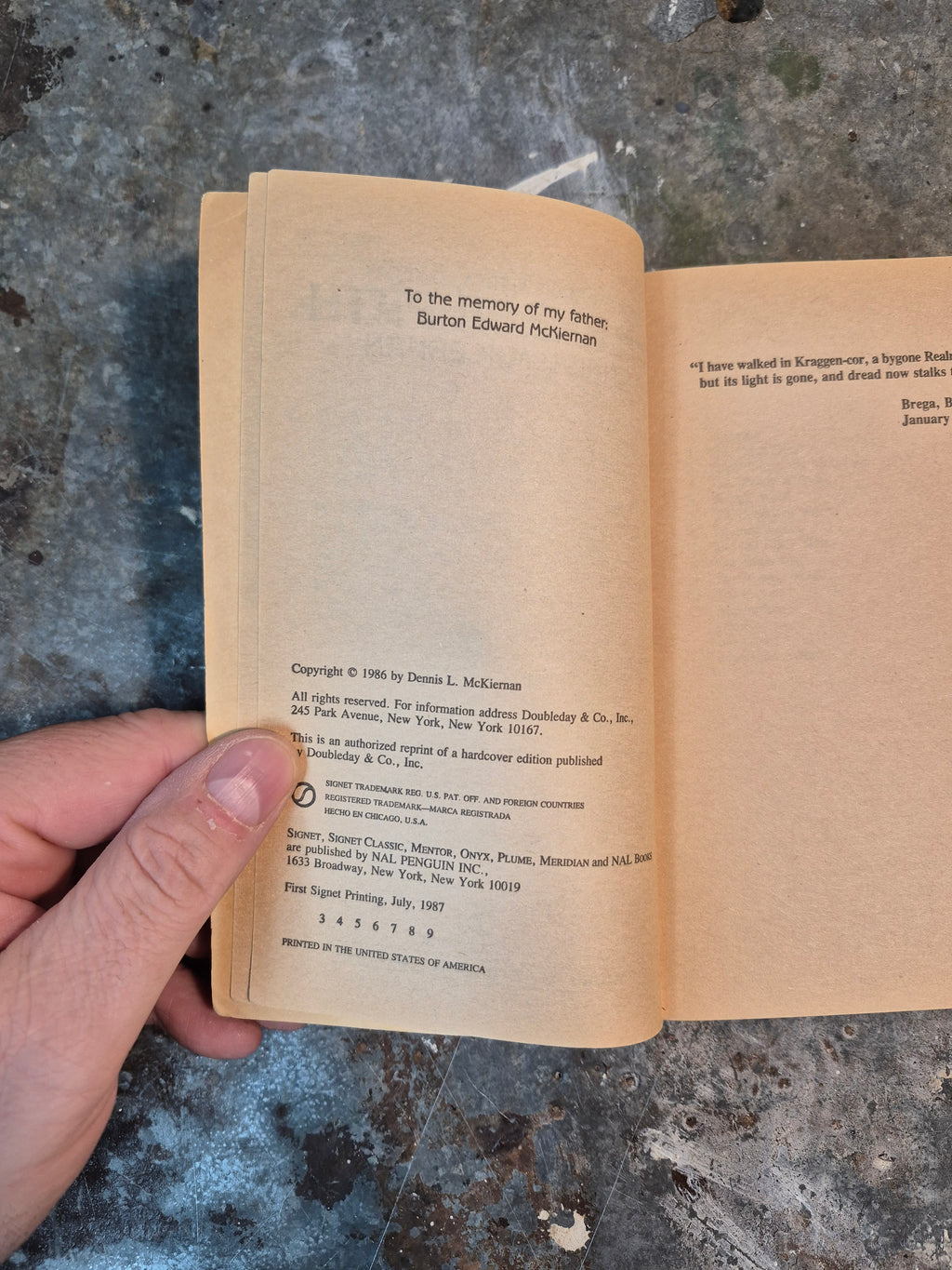Late 80s edition of the novel by Dennis L. McKiernan, in rough but solid and readable condition. Price reduced accordingly.