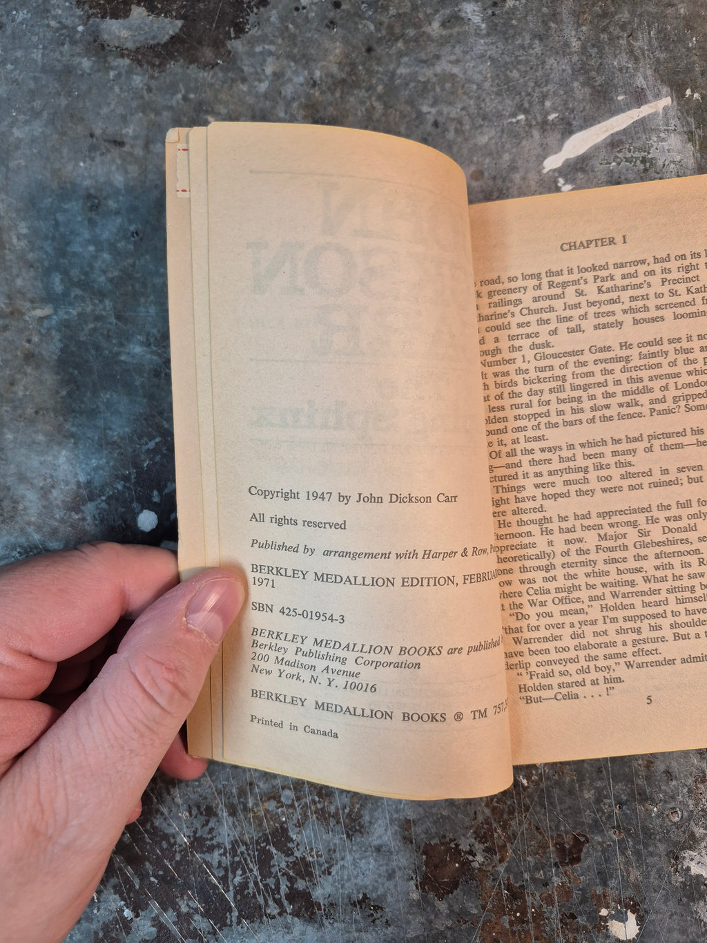 Early 70s printing of the novel by Murder-Mystery master John Dickson Carr, in great condition with minor wear and tanning.