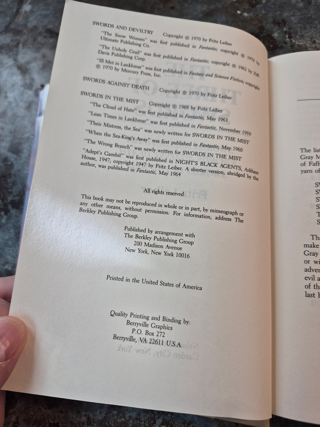 Early 70s hardcover book club omnibus of stories by Fritz Leiber, in good condition with minor wear and scuffing.