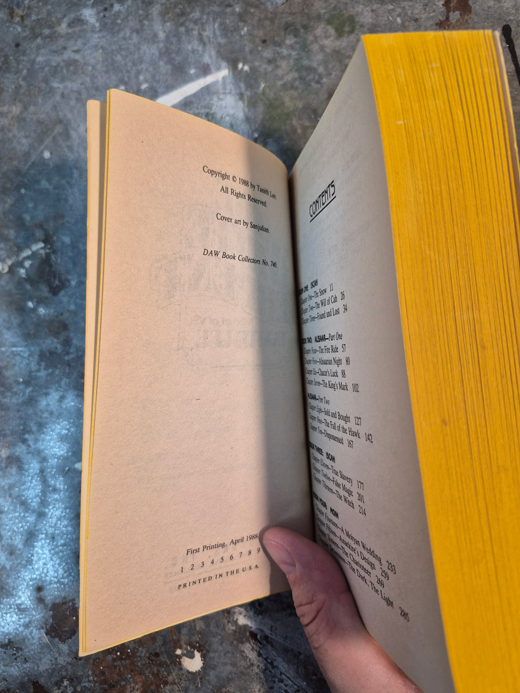 Late 80s novel by Tanith Lee, in great condition with minor wear and tanning. Remainder stamps on the top, page block is very clean and bright. Appears unread.