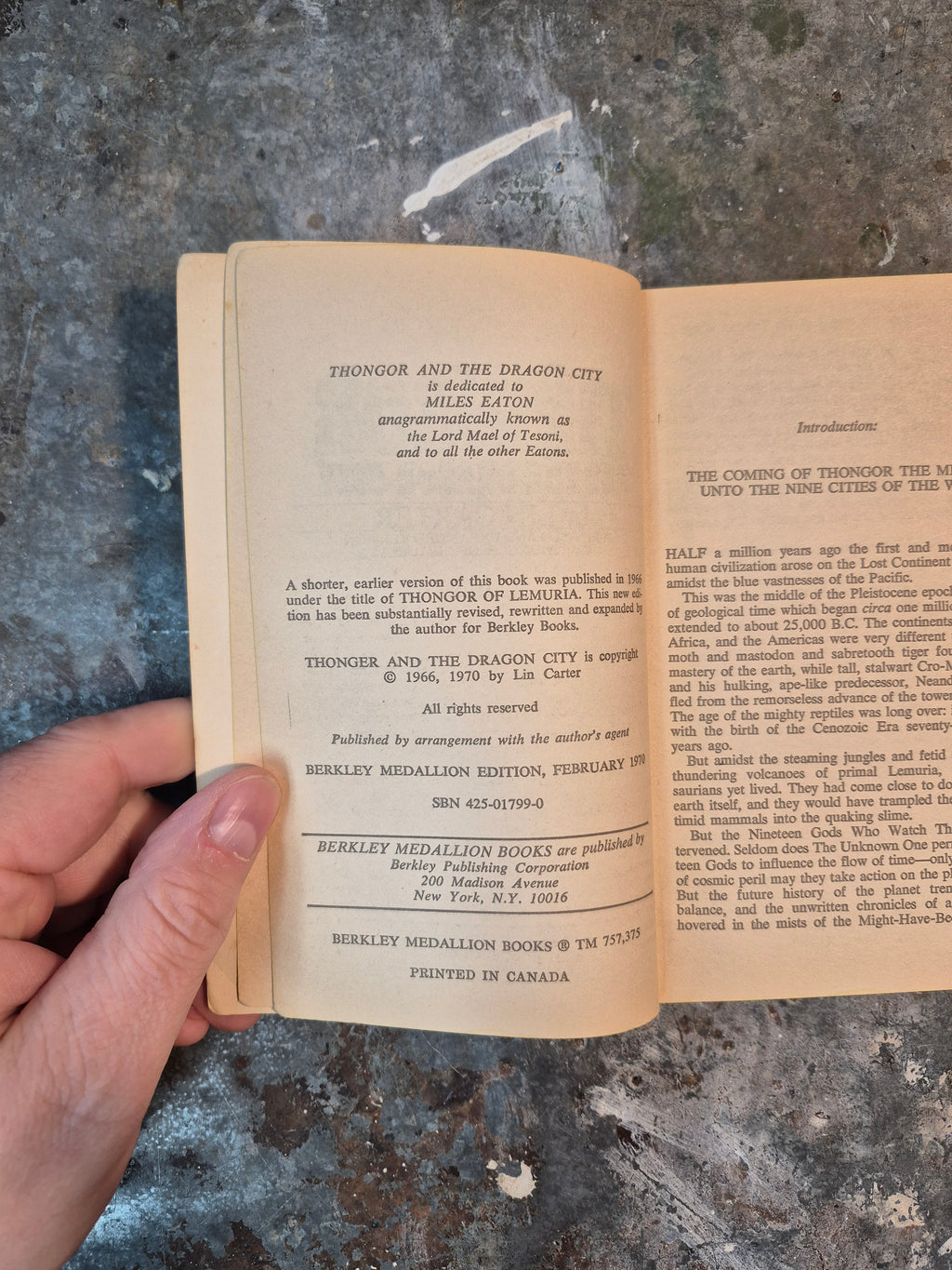 Early 70s Thongor novel by Lin Carter, in good condition with minor wear and tanning. Slight spine lean.