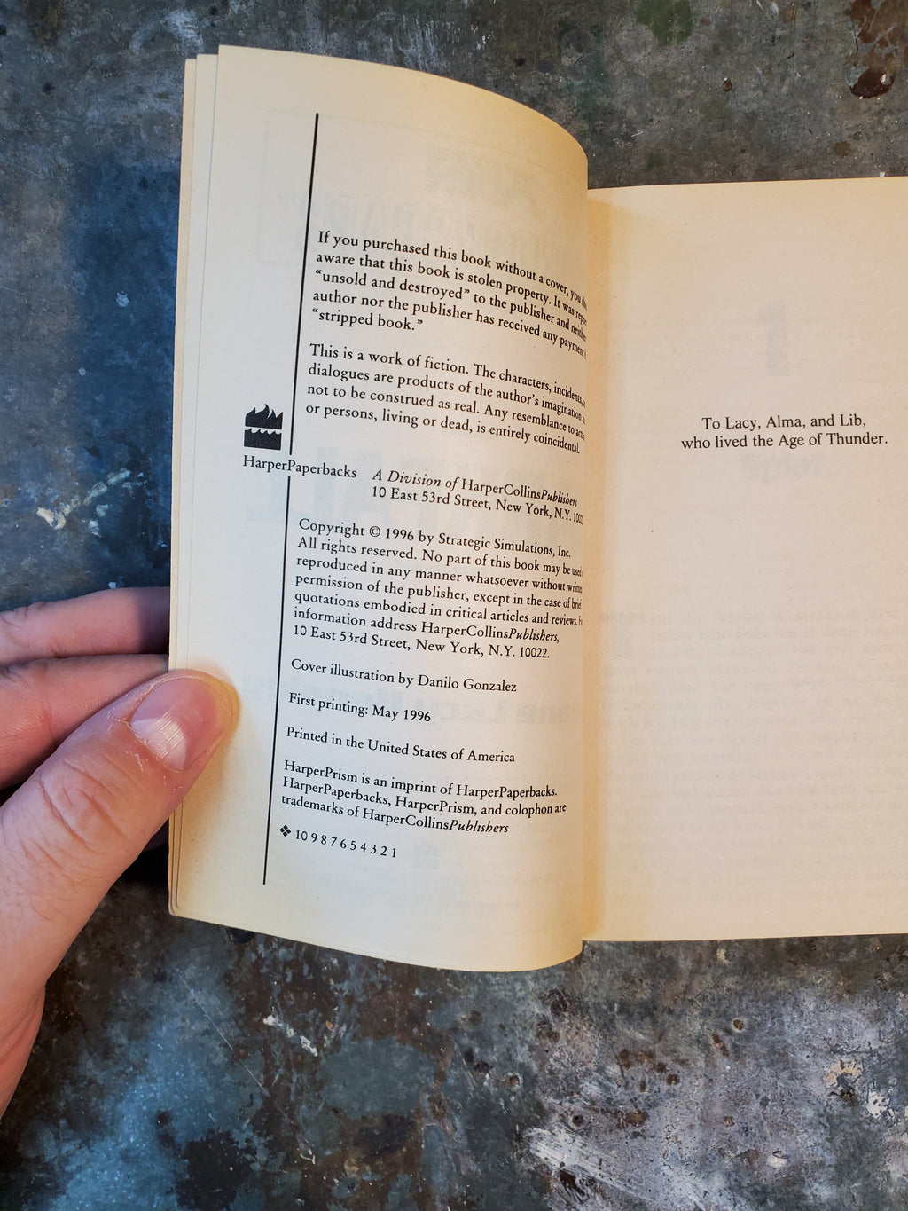Mid 90s Thunderscape novel by Shane Lacy Hensley, in good condition with minor wear and tanning.