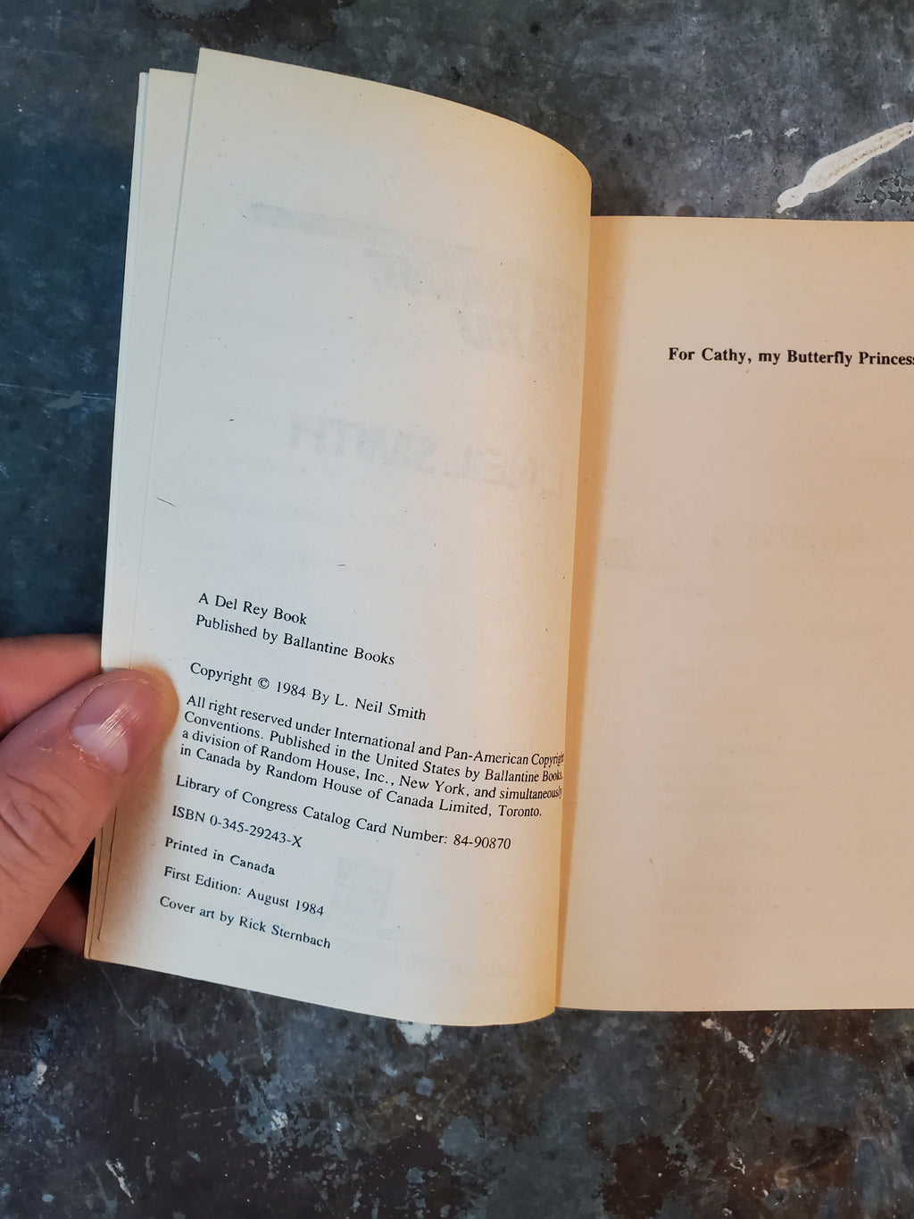 Mid 80s novel by L. Neil Smith, in good condition with minor wear and some stamps/names in the front.