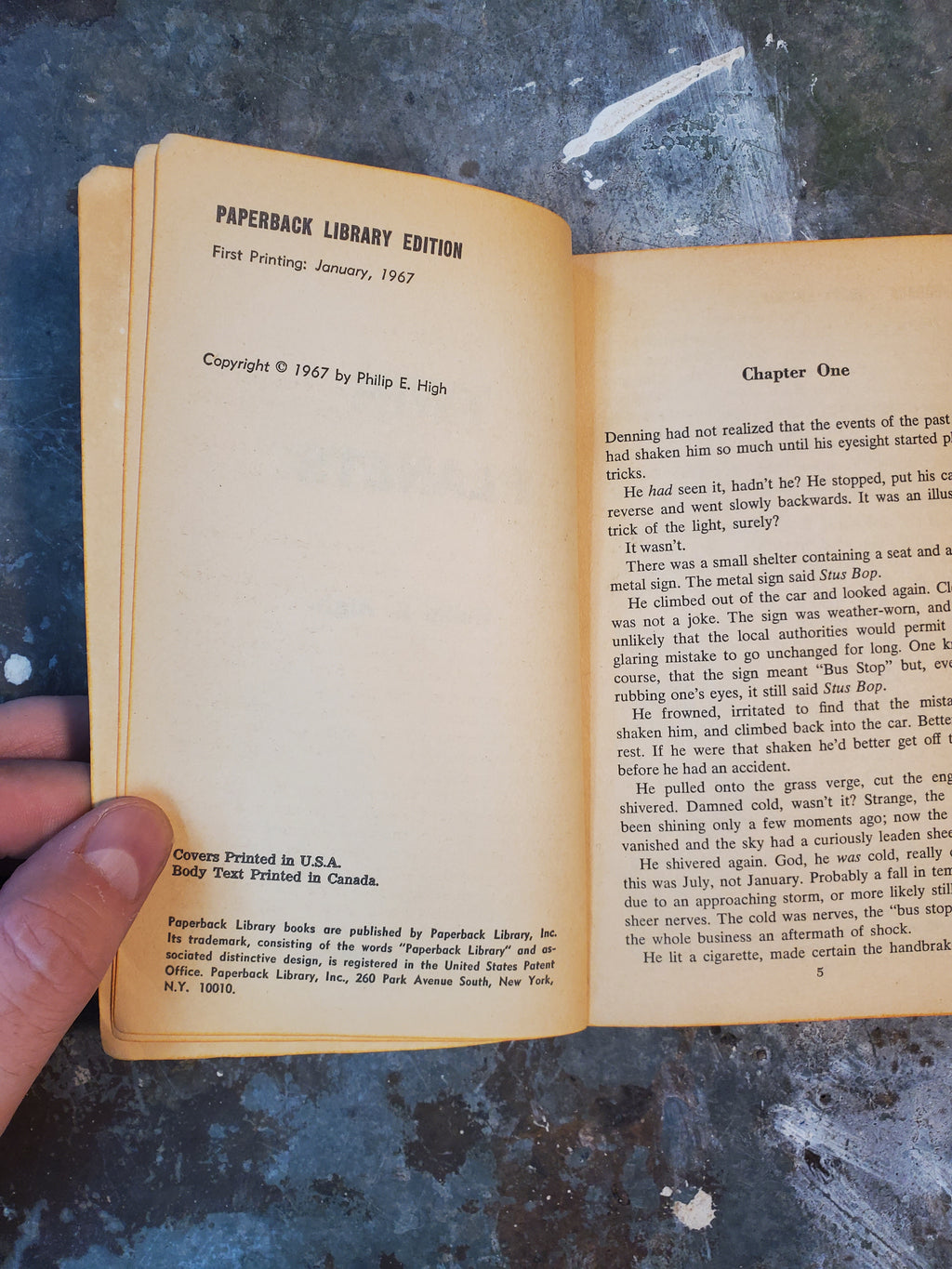Late 60s novel by Philip E. High, in mildly worn and tanned condition.