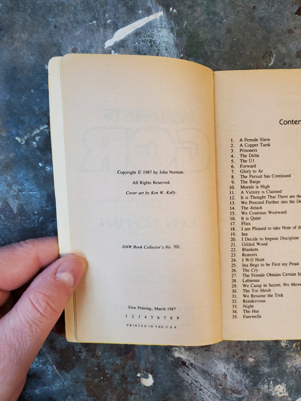 Late 80s Gor novel by John Norman, in good condition with minor wear and tanning.