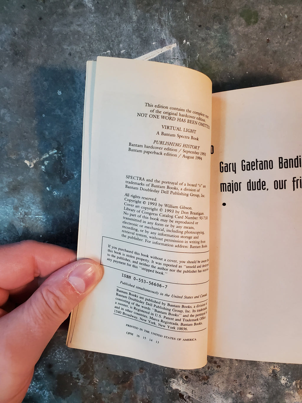Mid 90s edition of the classic novel by William Gibson, in great condition with mild wear and tanning. Slight warp.