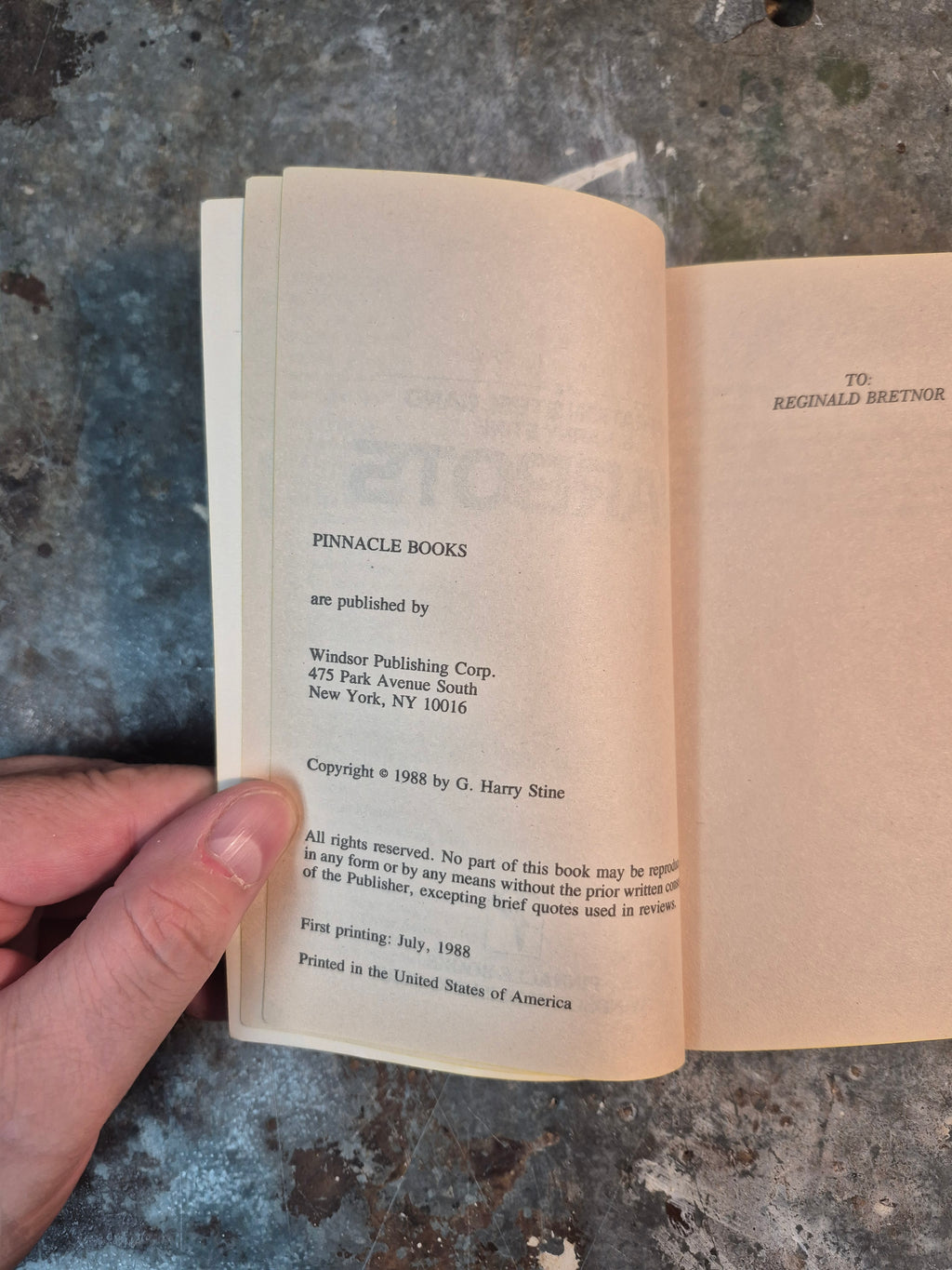 Late 80s Warbots novel by G. Harry Stine, in good condition with minor wear and markings.