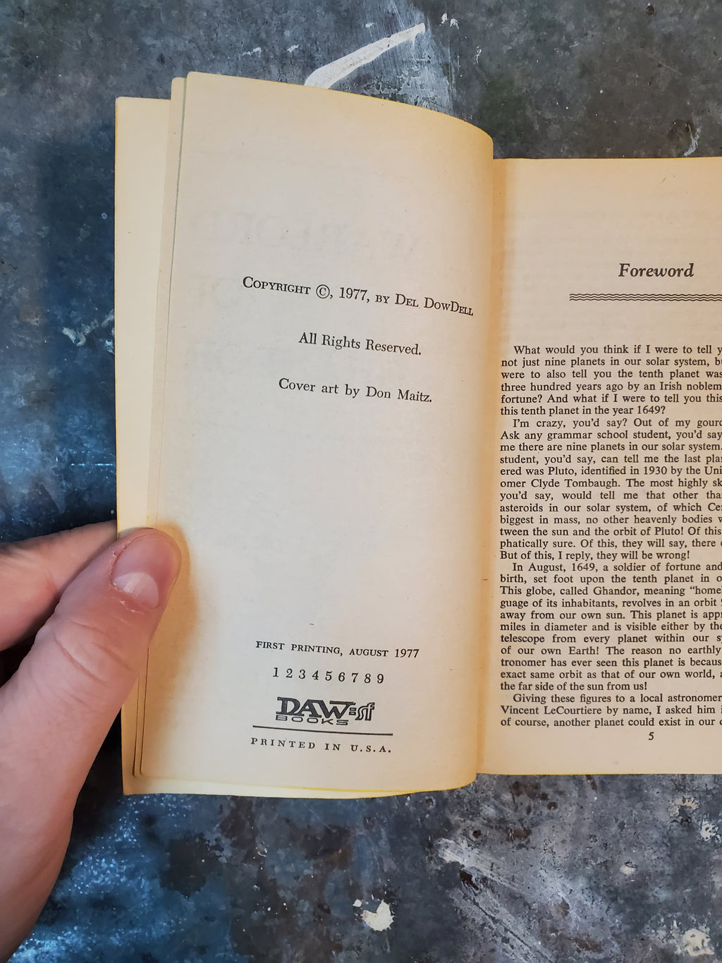 Late 70s Daw edition of the novel by Del DowDell, in decent mildly worn condition. Notable sticker damage on cover, otherwise nice.