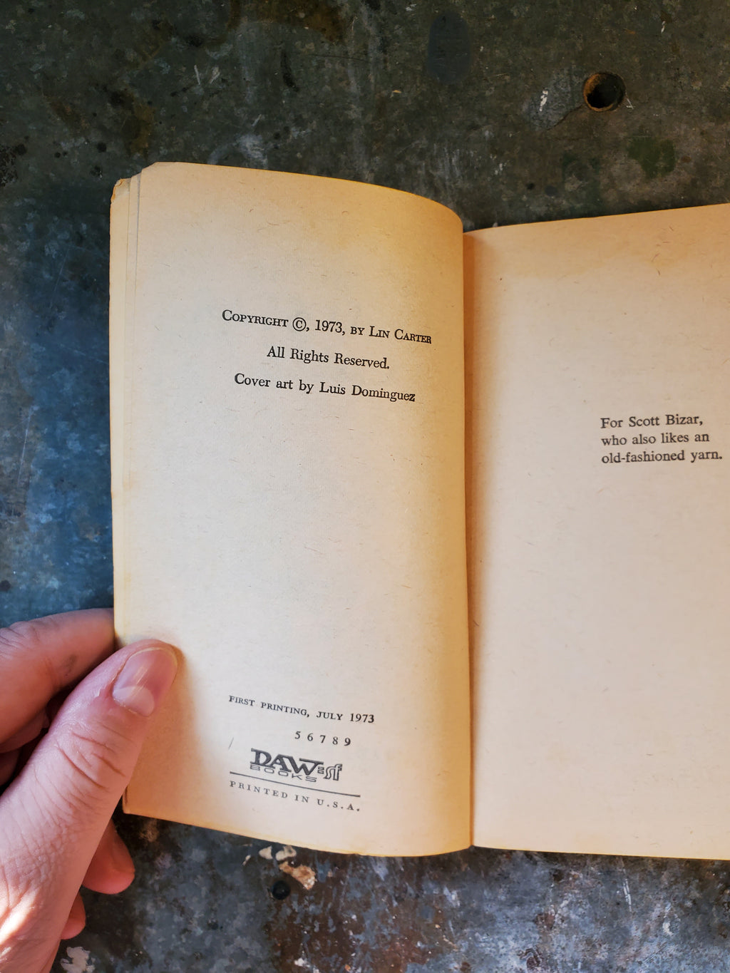 Early 70s novel by Lin Carter, in decent condition with minor wear and tanning.