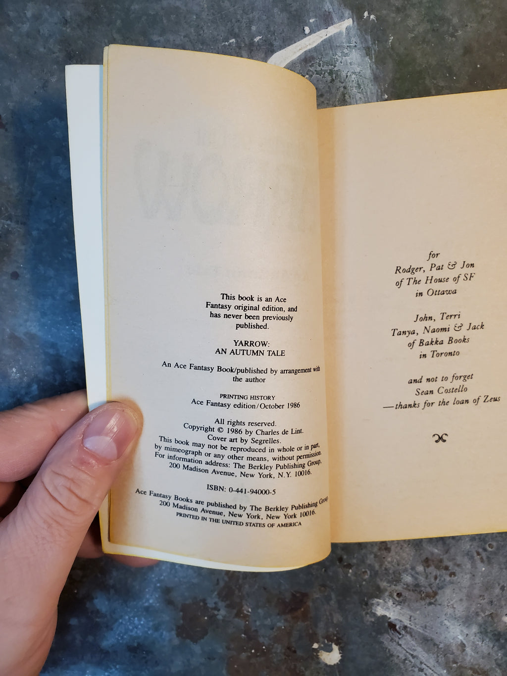 Mid 80s novel by Charles de Lint, in decent condition with minor wear and tanning. Spine appears slightly faded, page edges are very bright and clean. I now have 3 copies, which are in slightly better condition than the one pictured. This one will be sold last.